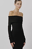 ÉTERNE's Long Sleeve Off-Shoulder Midi Dress is crafted from our butter-soft ribbed fabric, offering a slim fit and midi length—a versatile essential for everyday wear.