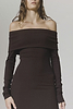 ÉTERNE's Long Sleeve Off-Shoulder Midi Dress is crafted from our butter-soft ribbed fabric, offering a slim fit and midi length—a versatile essential for everyday wear.